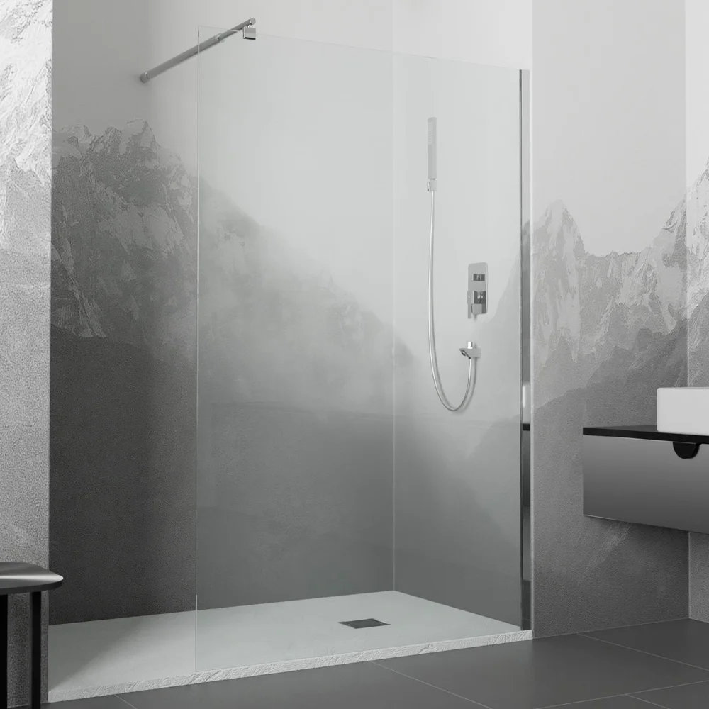 AQ WIW 09020CH Душевая перегородка Walk in с держателем 900x2000 профиль хром, стекло прозрачное