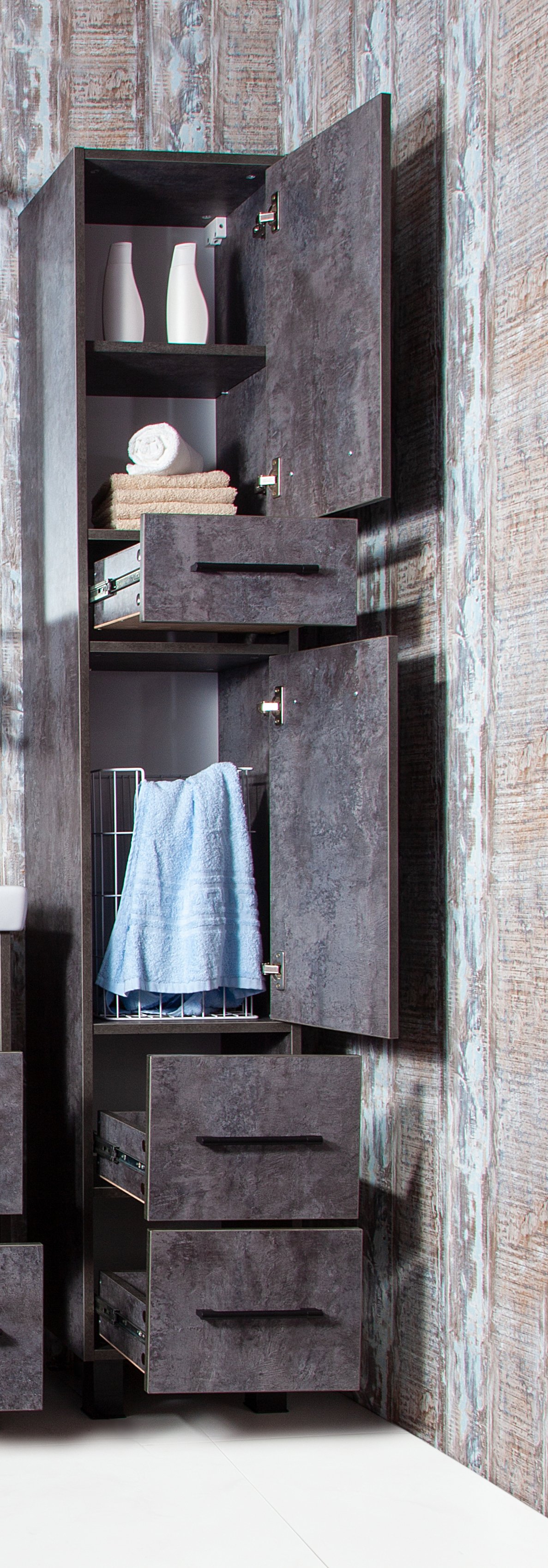 Шкаф-пенал Бриклаер Чили 34 цемент, с бельевой корзиной 4627125415197