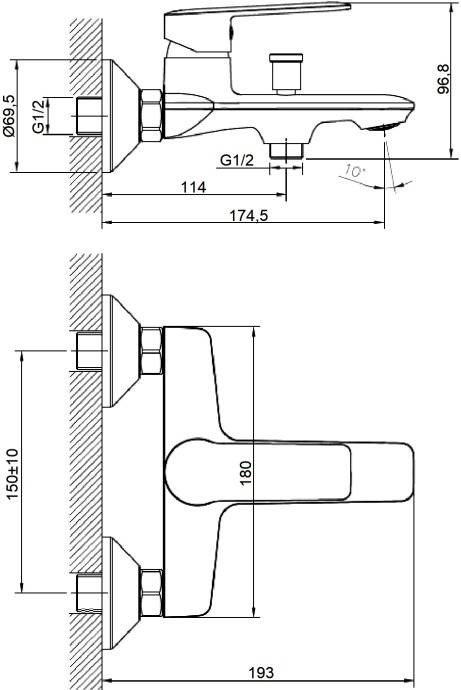 Смеситель - 1 шт. / Лейка - 1 шт. / Шланг - 1 шт. / Настенный держатель - 1 шт. / Эксцентрик - 2 шт. / Инструкция - 1 шт.